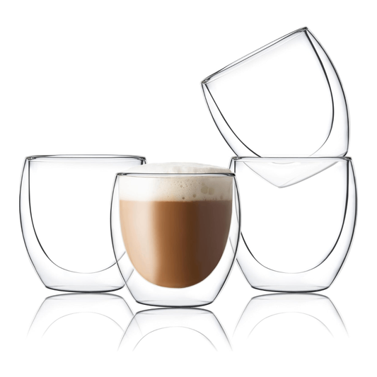 8.5oz Stemless Tumbler Double Walled Glass Cup for Latte Cappucino Cafe Milk
