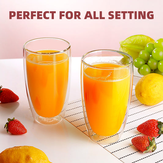 Lightweight 13.5oz Stemless Tumbler Double Walled Glass Cup for All Beverages 2pcs