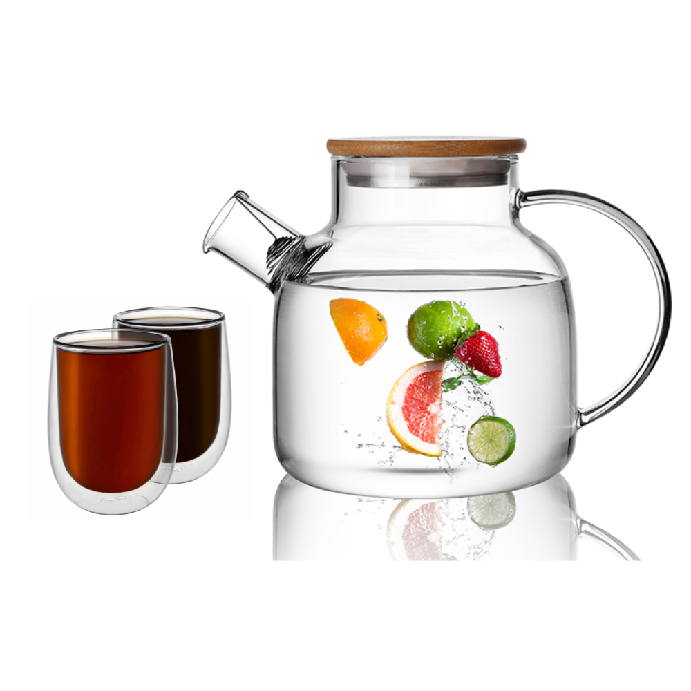 Isoliertes, stielloses Becher-Wasserkrug-Glas-Teekannen-Set, 3-tlg.