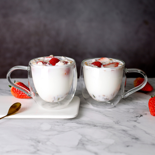 Lot de 2 tasses à boire en verre transparent à double couche de 10,8 oz pour thé au lait