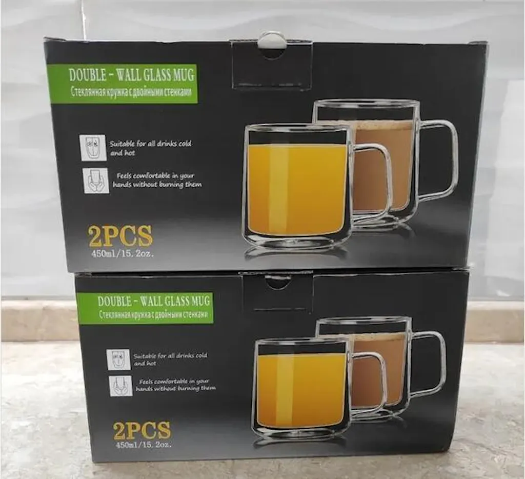 10oz 12oz 15.2oz Office Drinking Glassware Double Wall Glass Mug 2pcs 4pcs