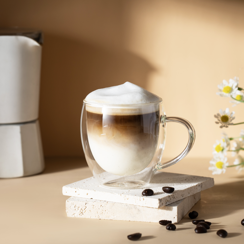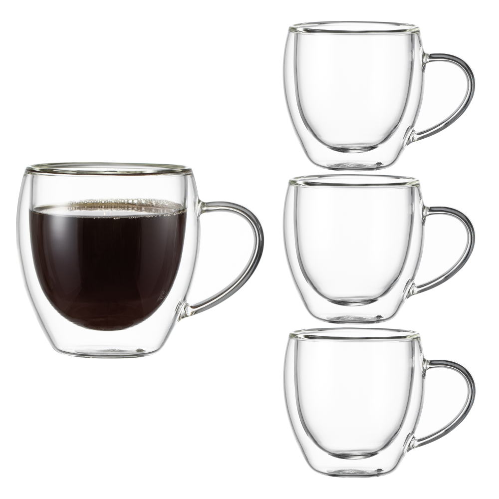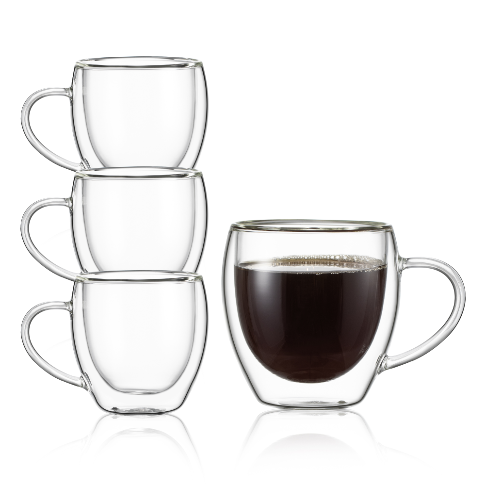 Double walled,hand blown glass insulation keeps your coffee hot and your hand cool.No sweat! Also works great for your favorite icy cold drink.