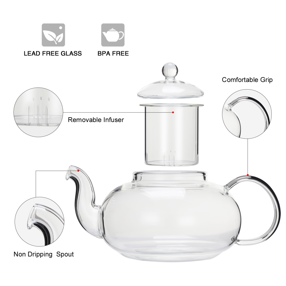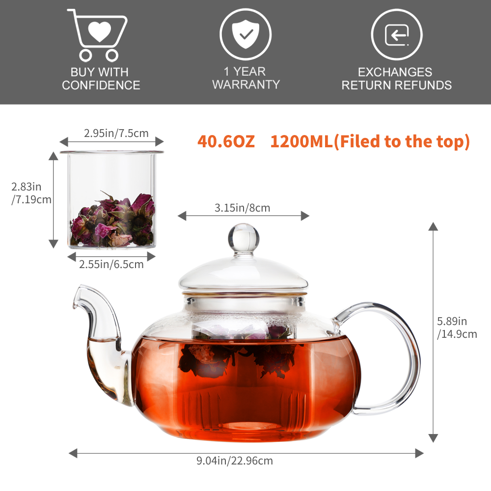 High Borosilicate Glass Teapot 40.6oz 1200ml Filtering Tea Maker
